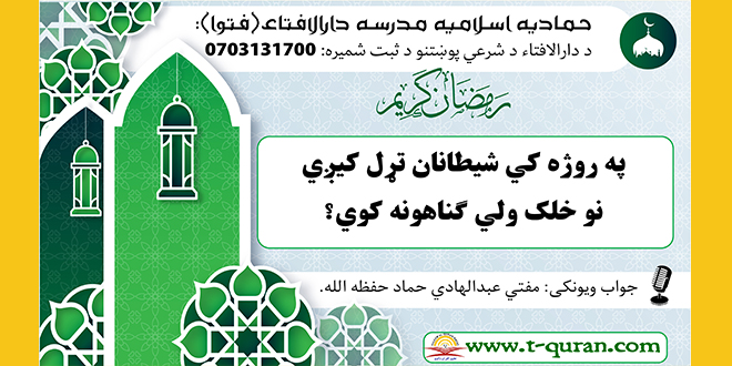 فتوا: په روژه کي شیطانان تړل کیږي نو خلک ولي ګناهونه کوي؟ اپریل 25, 2021 روژه, ستاسو شرعی پوښتنی او جوابونه 820 لیدنی شریکول Facebook Google +