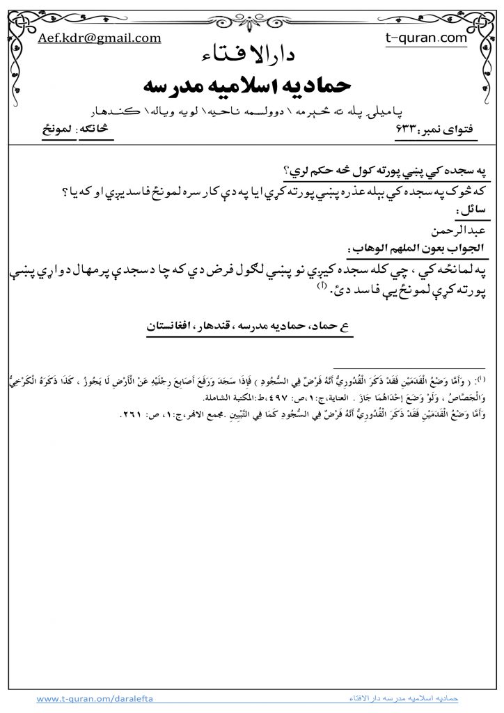 جواب ويونکی: مفتي عبدالهادي حماد. ستاسو د شرعي پوښتنو جوابونه کوم چي مو د حمادیه …