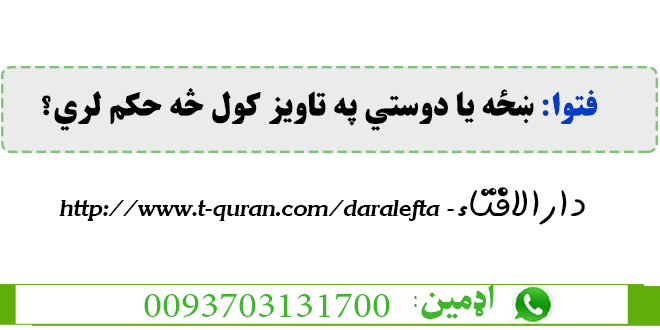 مخپاڼه / ستاسو شرعی پوښتنی او جوابونه / فتوا: ښځه یا دوستي په تاویز کول څه حکم لري؟