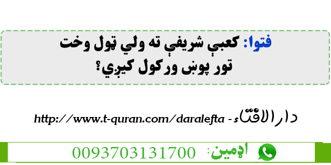 فتوا: کعبې شریفې ته ولي ټول وخت تور پوښ ورکول کیږي؟ جولای 6, 2020 Uncategorized 1,216 لیدنی جواب ويونکی: مفتي عبدالهادي حماد حفظه الله شریکول Facebook Google +