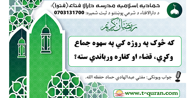 جواب ويونکی: مفتي عبدالهادي حماد. ستاسو د شرعي پوښتنو جوابونه کوم چي مو د حمادیه …