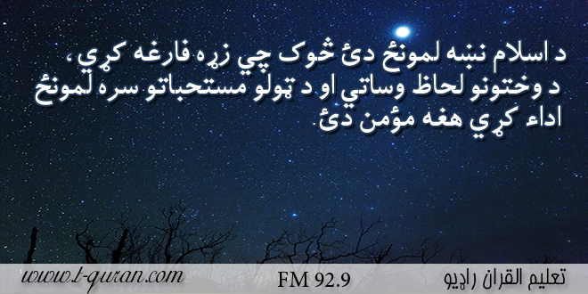 د اسلام نښه لمونځ دئ څوک چي زړه فارغه کړي، د وختونو لحاظ وساتي او د ټولو مستحباتو سره لمونځ اداء کړي هغه مؤمن دئ.