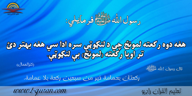 ژباړه: هغه دوه رکعته لمونځ چي د لنګوټې سره ادا سي هغه بهتر دئ تر اويا رکعته (لمونځ) بې لنګوټې.