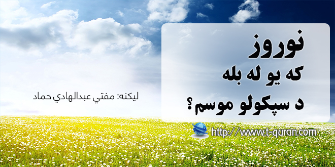 ۶: زما حرف اخر د نوروز په اړه دادئ چي کوم وروڼه ددې ورځو د رخصتۍ څخه استفاده کوي دکافرانو سره د تشبیه په نیت نه بلکي دخپل کلتور په نیت ځي پر تګ ممانعت نسته چي دمنکراتو او خرپاتو ځانونه وساتي او که څوک نوروز یوه مذهبي ورځ بولي یا یې هم اختر بولي حرام دئ.