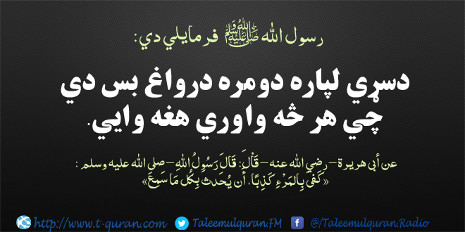 رسول الله صلی الله علیه وسلم فرمايي: دسړی لپاره دومره درواغ بس دي چي هر څه واوری هغه وايي.