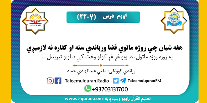 اووم درس: وړاندي کوونک: مفتي عبدالهادي حماد د اووم درس ویډیویي بڼه دلته کتلای سی: https://youtu.be/GgzYKQ6yTgE