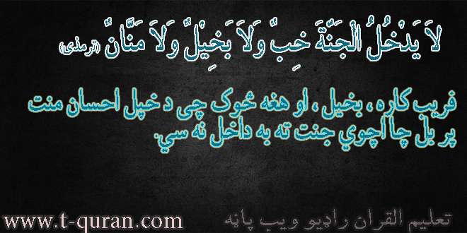 فريب کاره ، بخيل ، او هغه څوک چی د خپل احسان منت پر بل چا اچوي جنت ته به داخل نه سي.
