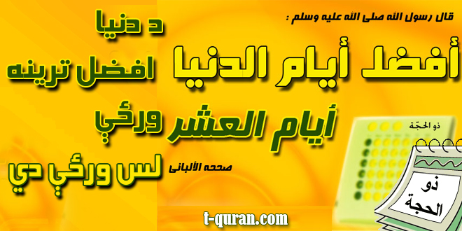رسول الله صلی الله علیه وسلم فرمایلي دي : ددنیا افضل ترینه ورځې لس ورځې دي(ذالحجې لس ورځې)