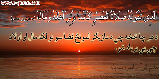 الَّذِى تَفُوتُهُ صَلاَةُ الْعَصْرِ كَأَنَّمَا وُتِرَ أَهْلَهُ وَمَالَهُ (بخاری و مسلم)