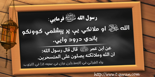 | عن ابن عمر رضی الله عنه قال قال رسول الله ان الله وملائکته يصلون على المتسحرين(۱). | ژباړه: رسول الله صلی الله علیه وسلم فرمايي: الله جل جلاله او ملائکي يې پر پېشلمي کوونکو باندي درود وايي. |