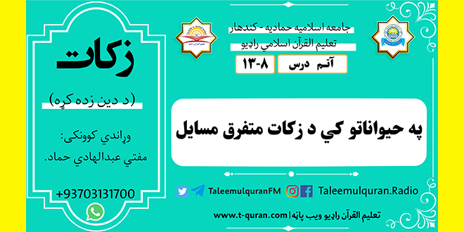 د دین زده کړه (زکات) اووم درس: وړاندي کوونکی: مفتي عبدالهادي حماد د اووم درس …