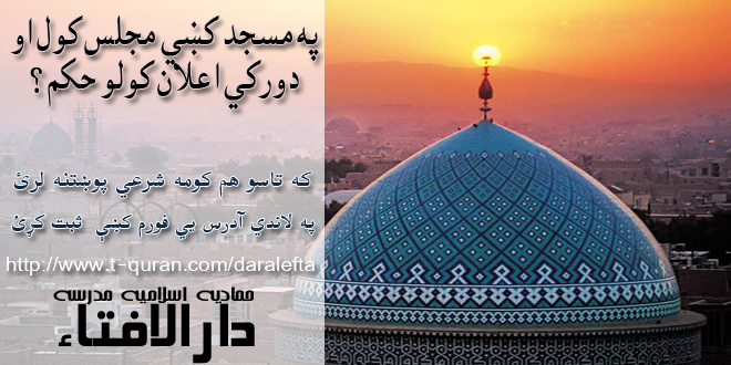 مخپاڼه / ستاسو شرعی پوښتنی او جوابونه / روا او ناروا / په مسجد كښي مجلس كول او دوركي اعلان کولو حکم ؟