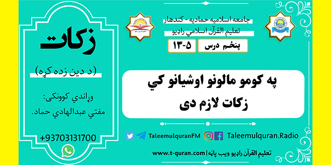 مخپاڼه / درسی خپرونی / په کومو مالونو اوشیانو کي زکات لازم دی|۵-۱۳|
