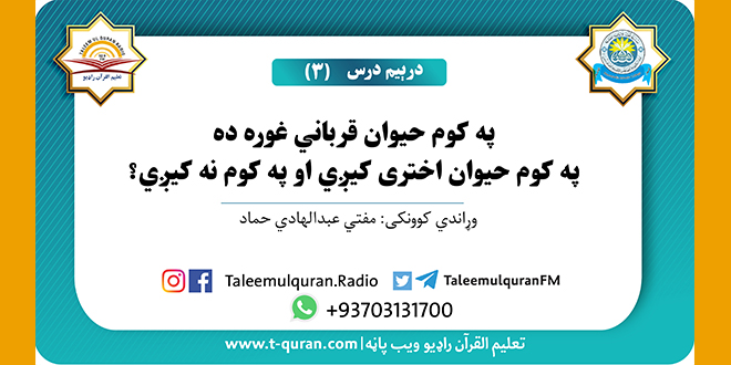 درېیم درس: وړاندي وونکی: مفتي عبدالهادي حماد د همدي درس ویډیویي بڼه: https://youtu.be/VPDKtT7F-7Q https://twitter.com/taleemulquranFM/status/1287443925356220423?s=19