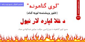 څلور ویشتمه لویه گناه: د غلا لپار لار نیول (قطاع الطريق) د مسلمانانو په وړاندي لوى لاري نيول، مالونه او پيسې ځني اخيستل لويه گناه ده. د سپېڅلي شريعت د قانون له مخي راسته لاس او چپه پښه پرېكول ورته جزا ټاكل سوې ده. الله جل جلاله یې اړونده فرمايي: ﴿اِنَّمَا جَزٰۗؤُا الَّذِيْنَ يُحَارِبُوْنَ اللّٰهَ … Continue reading څلور ویشتمه لویه ګناه: د غلا لپار لار نیول (قطاع الطريق)