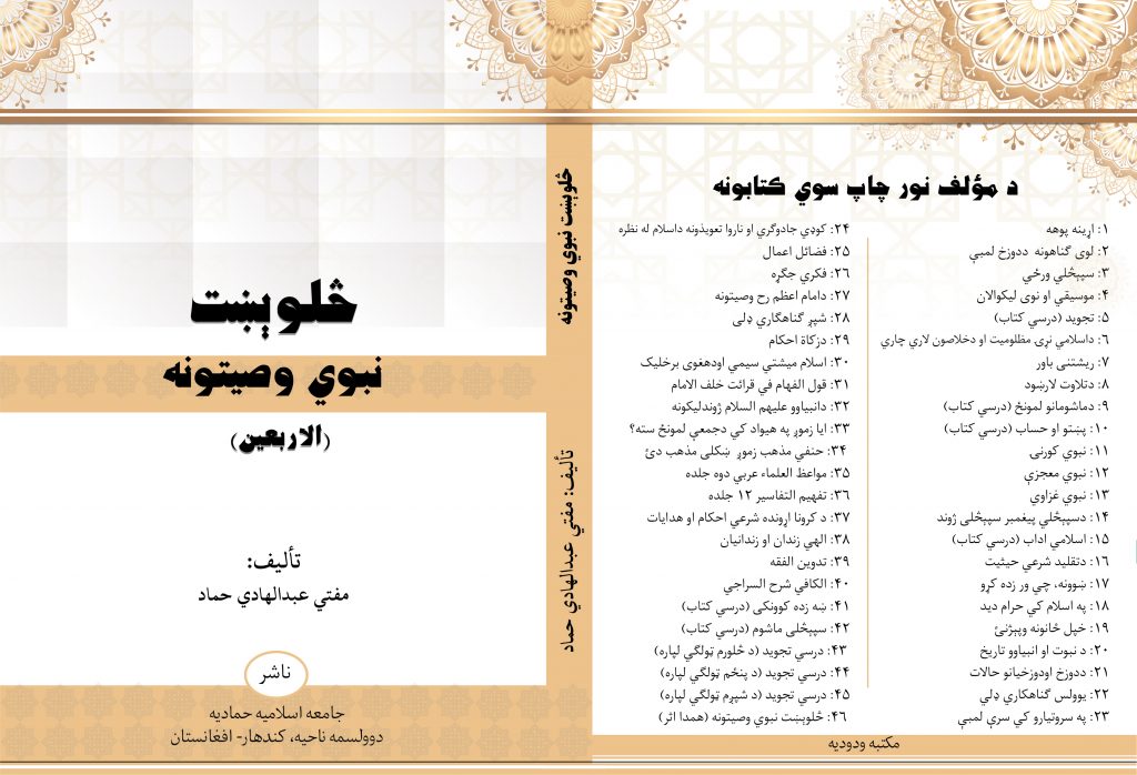 مخپاڼه / کتابتون / پښتو کتابونه / څلوېښت (۴۰) نبوي وصیتونه!