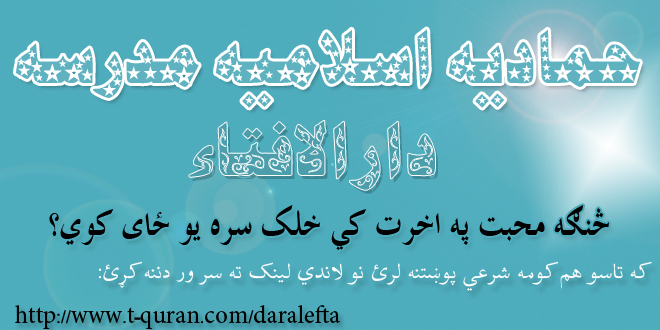 که تاسو هم کومه شرعي پوښتنه لري د دارالافتاء له لارې یی شریکوالای سئ