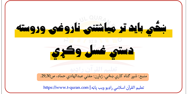 په مياشتنۍ ناروغۍ کي حکم دادئ چي کله ښځي ته مياشتنۍ ناروغي پېښه سي تر پېښېدو وروسته دپاکۍ نښانې پکښي ښکاره سي بايد دستي غسل وکړي او دهمدغه وخت لمونځ ادا کړي آن تردې که دومره وخت وو چي ښځي يوازي (الله اکبر) پکښي ويلاى سواى نور دغه وخت تېرېدئ پر ښځي باندي ددغه وخت لمونځ لازم دئ که څه هم وخت تېر سي بېرته به يې راګرځوي او که وخت زيات وي نو ښځي ته لازمي ده چي ډېر ژر غسل وکړي او خپل لمونځ په خپل وخت کي ادا کړي که يې ځنډوي او يا سستيت پکښي کوي تر داسي بريده چي ځني قضا سي نو دا ستره ګناه ده ، بدبختانه په اوس وخت کي دښځو خورا زياته بې پروايي روانه ده کله چي يې ناجوړي پاى ته ورسيږي پاکي ورته راسي دا هيڅ پروا نه کوي کله چي يې زړه وغوښتى په هغه وخت کي غسل کوي حال داچي دا کار لويه ګناه ده داسي لا هم سته چي دماخوستن تر لمانځه مخکي يې ناروغي پاى ته ورسيږي دا ټوله شپه غسل نه کوي حال داچي تر صبح صادق وړاندي دا وخت لري چي دماخوستن لمونځ ادا کړي او دماخوستن لمونځ پر دې فرض هم دئ ځکه دا په دغه وخت کي پاکه ده يوازي غسل کول ځني غواړي ، دداسي بې پروايۍ څخه بايد مسلماناني ښځي په جدي توګه ځانونه وساتي ځکه داکار لويه ګناه ده ، تاسو دصحابيانو بيبيانو ژوند ته فکر وکړئ هغوى څومره تقوا کول کله چي به ناروغي ورته پېښه سوه نو دشپې به څو ځلي دامبارکي ښځي راپورته کېدلې څراغ به يې لګاوه او خپل ځانونه به يې کتل ددې لپاره چي که دوى پاکي سوي وي نو غسل به يې کاوه څو په خپل وخت کي لمونځ ادا کړي او لمونځ ځني قضا نه سي په اوس وخت کي خلګ دومره بې پروا سوه چي څراغ لا څه کوې چي په تکليف به لګېدئ اوس نوي څراغان چي په يوه بټن سره لګيږي دا کار لا نه کوي او ورته ګران کار دئ دغه لږ تکليف هم پرځان نه تېروي او لمونځ په بې پروايۍ سره قضا کوي.