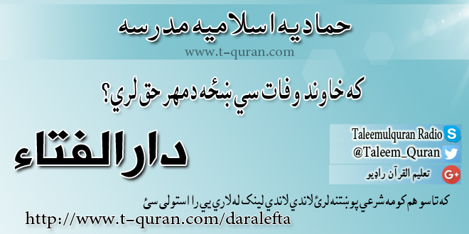 مخپاڼه / ستاسو شرعی پوښتنی او جوابونه / که خاوند وفات سي ښځه دمهر حق لري؟