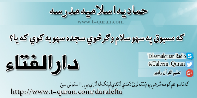 مخپاڼه / ستاسو شرعی پوښتنی او جوابونه / که مسبوق په سهو سلام وګرځوي سجده سهو به کوي که یا؟