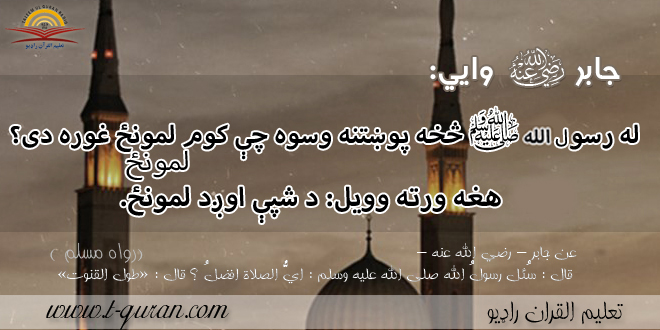 جابر رضي الله عنه وایي: له رسول الله صلى الله عليه وسلم څخه پوښتنه وسوه چې کوم لمونځ غوره دی؟