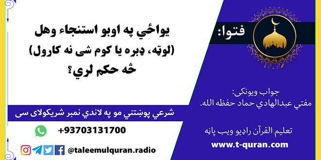 د همدې فتوا ویډیو بڼه د تعلیم القرآن راډیو په یوټیوب چینل کي هم کتلای سی: