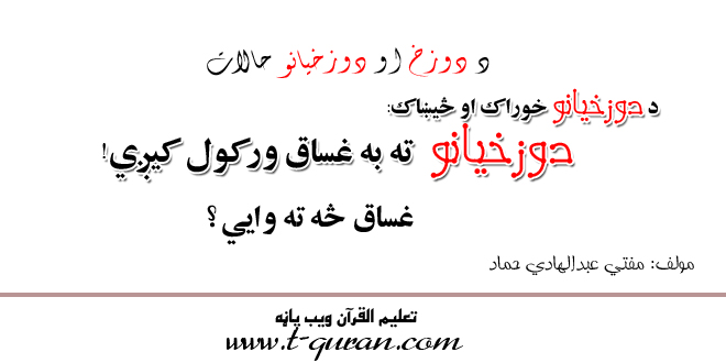 مخپاڼه / چاڼ سوي مضامین / دوزخيانو ته به غساق ورکول کيږي