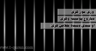 وږی مور کړئ، دناروغ پوښتنه وکړئ او بندي دبنده خلاص کړئ! شپږم درس: دپورتني حدیث مبارک الفاظ او حواله: عَنْ أَبِي مُوسَى قَالَ: قَالَ رَسُولُ اللَّهِ صَلَّى اللَّهُ عَلَيْهِ وَسَلَّمَ: «أَطْعِمُوا الْجَائِعَ وَعُودُوا الْمَرِيض وفكوا العاني» . رَوَاهُ البُخَارِيّ، رقم: 5373 تشریح: که کوم مسلمان وږی وي دځان مړولو لپاره …