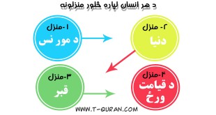 د هر انسان لپاره څلور منزلونه هر انسان پر څلورو منزلونو تیریږي، لومړی منزل د مور نس دی، دا دده د ذات جوړېدو ځای دی چي په دې کي دده لپاره څه اختیار نشته، دوهم منزل دنیا ده، دا د صفاتو جوړولو ځای دی، دلته دومره اختیار ورکول کيږي چي …