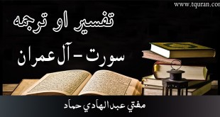 دقرآن کریم تفسیر او ترجمه سورة آل عمران: (۹ – ۱) الـم (1) اللَّهُ لَا إِلَهَ إِلَّا هُوَ الْحَيُّ الْقَيُّومُ (2) نَزَّلَ عَلَيْكَ الْكِتَابَ بِالْحَقِّ مُصَدِّقًا لِمَا بَيْنَ يَدَيْهِ وَأَنْزَلَ التَّوْرَاةَ وَالْإِنْجِيلَ (3) مِنْ قَبْلُ هُدًى لِلنَّاسِ وَأَنْزَلَ الْفُرْقَانَ إِنَّ الَّذِينَ كَفَرُوا بِآيَاتِ اللَّهِ لَهُمْ عَذَابٌ شَدِيدٌ وَاللَّهُ عَزِيزٌ ذُو …
