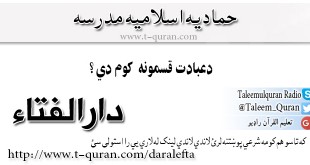 که غواړئ خپله شرعي پوښتنه د حماديې مدرسې دارالافتاء ته را واستوئ او د خپلې شرعي پوښتني جواب تر لاسه کړئ لاندي لینک کښېکاږئ دارالافتاء کولای سی لاندي فتوا باندي راسته کلیک وکړئ او خپل کمپیوټر کښې يې ثبت کړئ