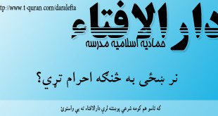 که غواړئ خپله شرعي پوښتنه د حماديې مدرسې دارالافتاء ته را واستوئ او د خپلې شرعي پوښتني جواب تر لاسه کړئ لاندي لینک کښېکاږئ دارالافتاء کولای سی لاندي فتوا باندي راسته کلیک وکړئ او خپل کمپیوټر کښې يې ثبت کړی