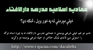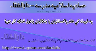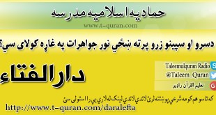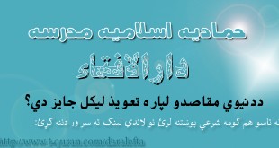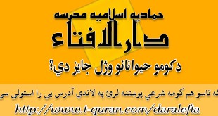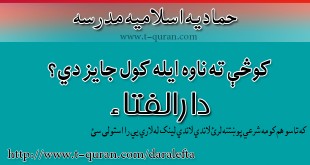 که غواړئ خپله شرعي پوښتنه د حماديې مدرسې دارالافتاء ته را واستوئ او د خپلې شرعي پوښتني جواب تر لاسه کړئ لاندي لینک کښېکاږئ دارالافتاء کولای سی لاندي فتوا باندي راسته کلیک وکړئ او خپل کمپیوټر کښې يې ثبت کړئ