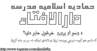 کولای سی لاندي فتوا باندي راسته کلیک وکړئ او خپل کمپیوټر کښې يې ثبت کړئ که تاسو هم کومه شرعي پوښتنه لري د دارالافتاء له لارې یی شریکوالای سئ