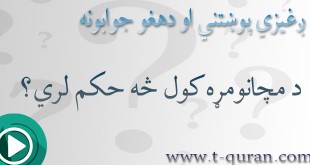 ږغیزي شرعی پوښتني او جوابونه جواب ویونکی: مفتي عبدالهادي حماد (حفظه الله) سائل : محمد پوښتنه: د مچانو مړه کول دا څه حکم لري؟ د همدغه پوښتني او جواب د کښته کولو لپاره دلته کلیک وکړئ