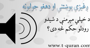 ږغیزي شرعي پوښتني او جوابونه: محمد له زیړۍ ولسوالۍ څخه: پوښتنه: یو سړی که د خپلې میرمن تۍ وروي ( شیدې یي وچېښي) او دغه سړی اولاودونه ونه لري نو داڅنګه دئ؟ که تاسو هم کومه شرعي پوښتنه لرئ کولای سئ د دارالافتاء له لاري یی راسره شریکې کړئ او …