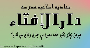 کولای سی لاندي فتوا باندي راسته کلیک وکړئ او خپل کمپیوټر کښې يې ثبت کړئ که تاسو هم کومه شرعي پوښتنه لري د دارالافتاء له لارې یی شریکوالای سئ