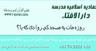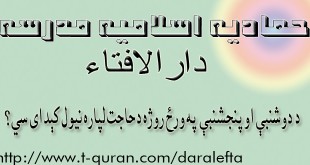 که غواړئ خپله شرعي پوښتنه د حماديې مدرسې دارالافتاء ته را واستوئ او د خپلې شرعي پوښتني جواب تر لاسه کړئ لاندي لینک کښېکاږئ دارالافتاء کولای سی لاندي فتوا باندي راسته کلیک وکړئ او خپل کمپیوټر کښې يې ثبت کړئ