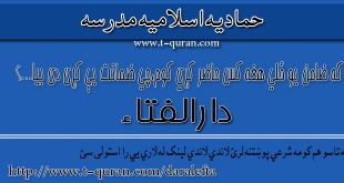 که غواړئ خپله شرعي پوښتنه د حماديې مدرسې دارالافتاء ته را واستوئ او د خپلې شرعي پوښتني جواب تر لاسه کړئ لاندي لینک کښېکاږئ دارالافتاء کولای سی لاندي فتوا باندي راسته کلیک وکړئ او خپل کمپیوټر کښې  يې ثبت کړئ