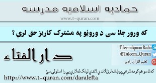 که غواړئ خپله شرعي پوښتنه د حماديې مدرسې دارالافتاء ته را واستوئ او د خپلې شرعي پوښتني جواب تر لاسه کړئ لاندي لینک کښېکاږئ دارالافتاء کولای سی لاندي فتوا باندي راسته کلیک وکړئ او خپل کمپیوټر کښې يې ثبت کړ