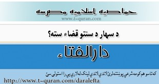 که غواړئ خپله شرعي پوښتنه د حماديې مدرسې دارالافتاء ته را واستوئ او د خپلې شرعي پوښتني جواب تر لاسه کړئ لاندي لینک کښېکاږئ دارالافتاء کولای سی لاندي فتوا باندي راسته کلیک وکړئ او خپل کمپیوټر کښې يې ثبت کړی