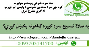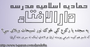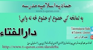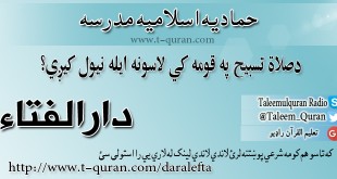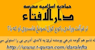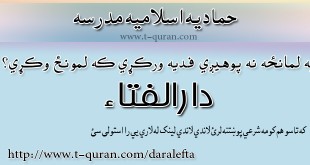 که غواړئ خپله شرعي پوښتنه د حماديې مدرسې دارالافتاء ته را واستوئ او د خپلې شرعي پوښتني جواب تر لاسه کړئ لاندي لینک کښېکاږئ دارالافتاء کولای سی لاندي فتوا باندي راسته کلیک وکړئ او خپل کمپیوټر کښې يې ثبت کړئ