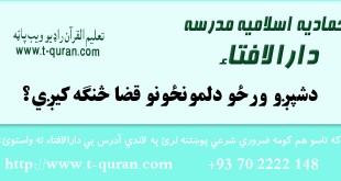 کولای سی لاندي فتوا باندي راسته کلیک وکړئ او خپل کمپیوټر کښې يې ثبت کړئ که تاسو هم کومه شرعي پوښتنه لري د دارالافتاء له لارې یی شریکوالای سئ