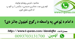 د امام د ټوخي په واسطه د رکوع ځڼډول جائز دی؟ مسلسله شمیره: ۴ جواب ویونکی: مفتي عبدالهادي حماد (حفظه الله) کښته کولو لپاره دلته کلیک وکړئ