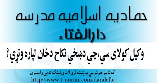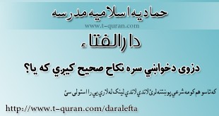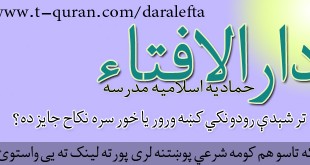 که غواړئ خپله شرعي پوښتنه د حماديې مدرسې دارالافتاء ته را واستوئ او د خپلې شرعي پوښتني جواب تر لاسه کړئ لاندي لینک کښېکاږئ دارالافتاء کولای سی لاندي فتوا باندي راسته کلیک وکړئ او خپل کمپیوټر کښې يې ثبت کړئ