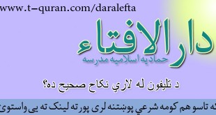 کولای سی لاندي فتوا باندي راسته کلیک وکړئ او خپل کمپیوټر کښې يې ثبت کړئ که تاسو هم کومه شرعي پوښتنه لري د دارالافتاء له لارې یی شریکوالای سئ