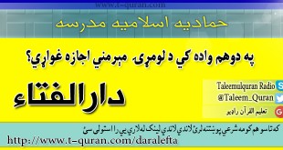 که غواړئ خپله شرعي پوښتنه د حماديې مدرسې دارالافتاء ته را واستوئ او د خپلې شرعي پوښتني جواب تر لاسه کړئ لاندي لینک کښېکاږئ دارالافتاء کولای سی لاندي فتوا باندي راسته کلیک وکړئ او خپل کمپیوټر کښې يې ثبت کړئ