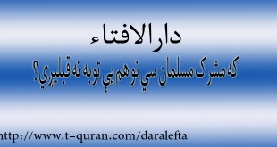 صدیق الله، له ژیړۍ ولسوالۍ څخه پوښتنه: زما له حاجي مولوي صاحب څخه دا پوښتنه ده چي د جنازي دلمانځه نیت او د لمانځه طریقه څه رقم ده؟ که تاسو هم کومه شرعي پوښتنه لرئ کولای سئ د دارالافتاء له لاري یی راسره شریکې کړئ او یا هم کولای سئ …