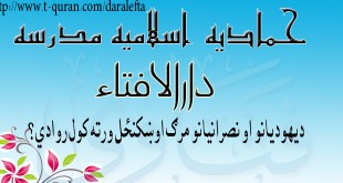 کولای سی لاندي فتوا باندي راسته کلیک وکړئ او خپل کمپیوټر کښې يې ثبت کړئ که تاسو هم کومه شرعی پوښتنه لرئ نو دارالافتاء باندي کلیک وکړئ.