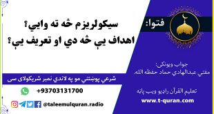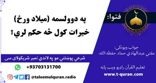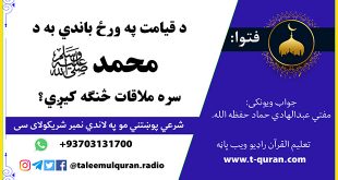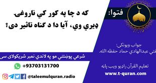 جواب ويونکی: مفتي عبدالهادي حماد که تاسي هم کومه شرعي پوښتنه لری زموږ د واټس شمیرې ته مو خپله شرعي پوښتنه ولیږی: 0093703131700 د تعلیم القرآن راډیو په یوټیوب چینل یې هم کتلای سي: